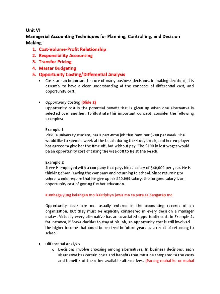 Differential Analysis PDF Opportunity Cost Cost